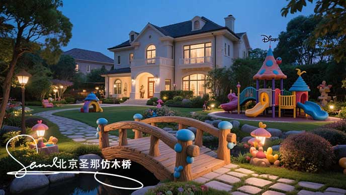 項目描述:當水泥失去了冰冷的工業質感,而被木質的溫暖外皮所覆蓋時,一座以“木質風格的橋梁”便成為了游樂區中一個有趣的連接點。水泥仿木橋將水泥的耐用性與木材的自然、親切感融為一體,并通過巧妙的設計,使“過橋”本身也成為了一項小型的冒險游戲。